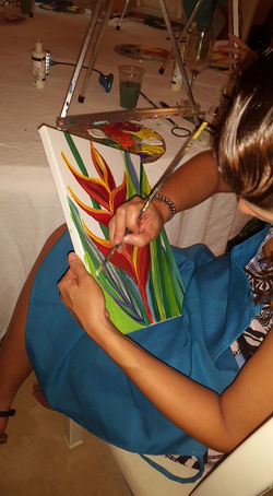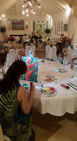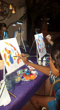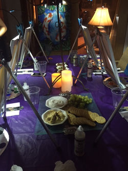 The party pictured above with the "Koi" theme was a 2-3-hour private party. Interestingly note; 4 of the 6 people pictured above had not picked up a paintbrush since their school days!