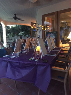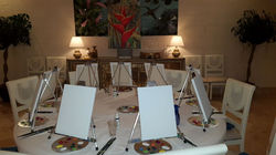 An on-time start (pricing begins at the agreed-upon start time), access to water, a large table to accommodate your guests comfortably with room for paint and easels, and access to the painting area at least 1 hour before start time to facilitate set up. Why not have a look at our galleries below for set-up ideas for your party?